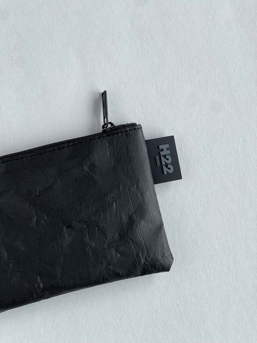 폴리에틸렌(PE) 비닐을 가공해 만든 파우치입니다. 열과 압력에 의해 압축된 표면에 나타나는 .패턴은 독특한 질감 뿐 아니라 스크래치에도 강한 것이 특징입니다.